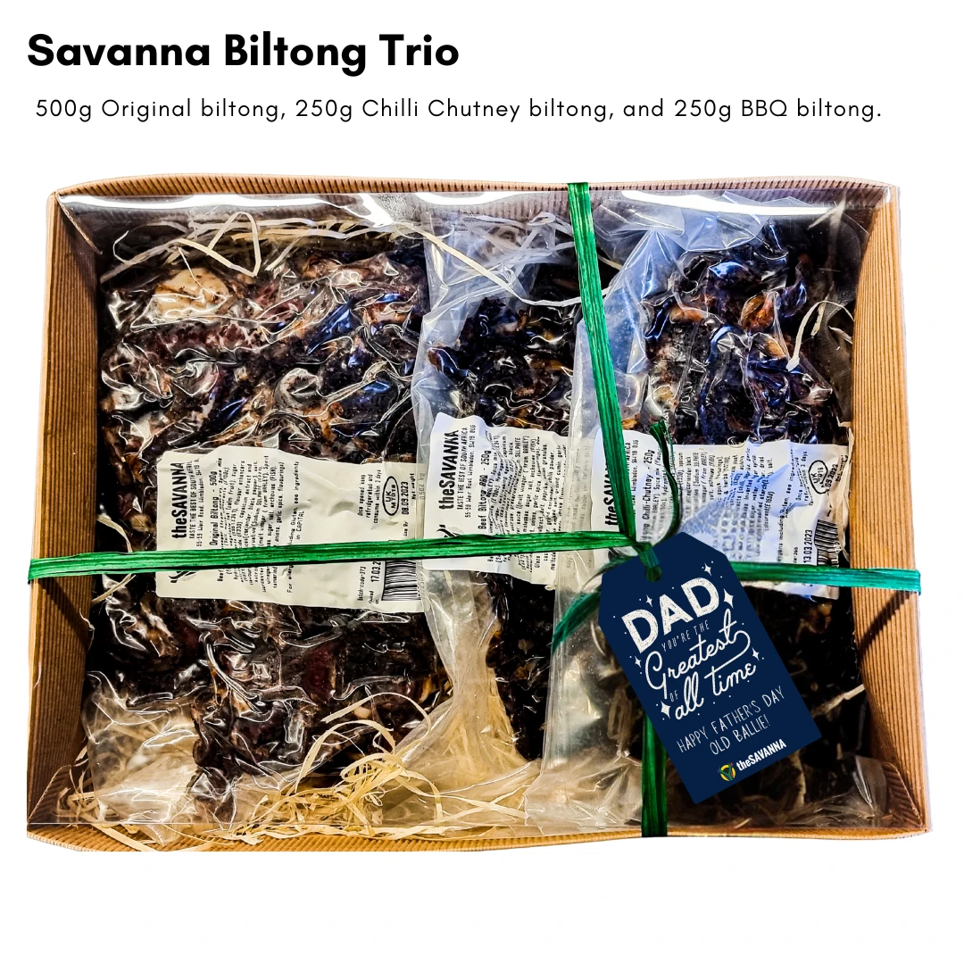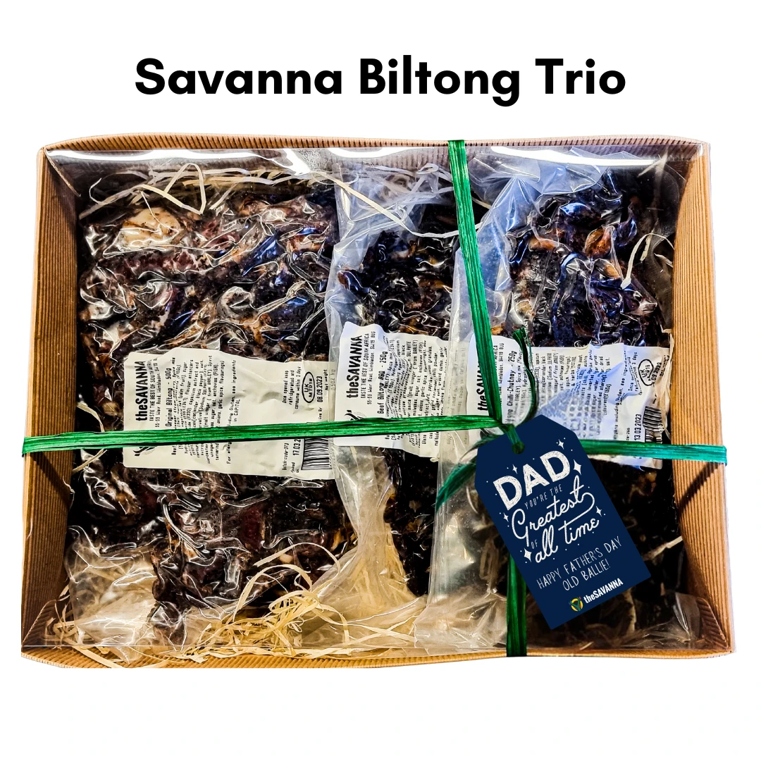 Treat Dad to the ultimate meaty indulgence with our Savanna Biltong Trio.
