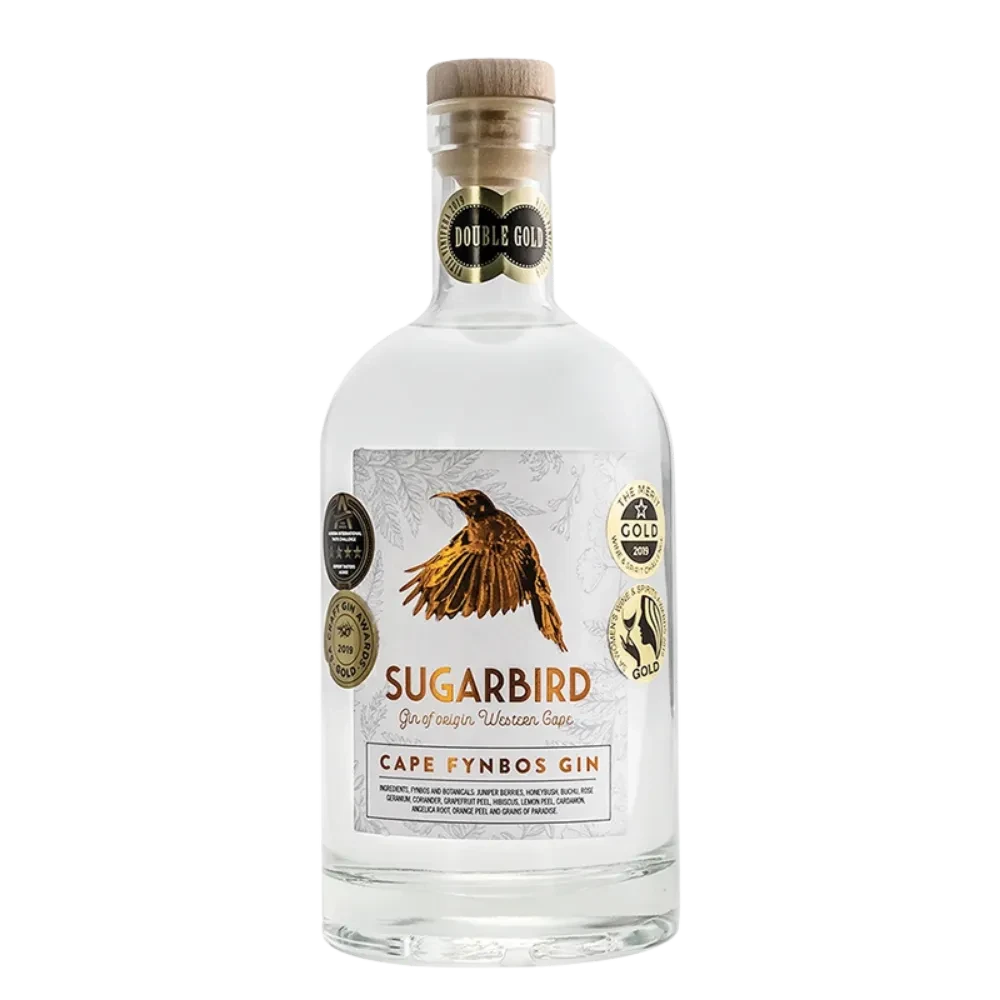 Inspired by the Cape Sugarbird, Sugarbird’s Original Fynbos varietal is floral- driven with notes of hibiscus, buchu and rose geranium. There are undertones of citrus peel and cape fynbos. It is the perfect balance of floral and citrus in an otherwise classic, dry gin. This gin now falls into a category that several Cape craft gins have created by inclusion of fynbos – “Cape Dry” – London Dry with a touch of Fynbos.